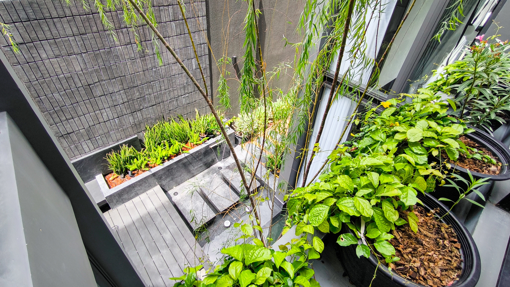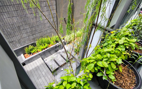 โดยมีคอร์ทยาร์ดกลางบ้าน สร้างความเชื่อมโยงระหว่างตัวบ้านและพื้นที่สีเขียวภายใน